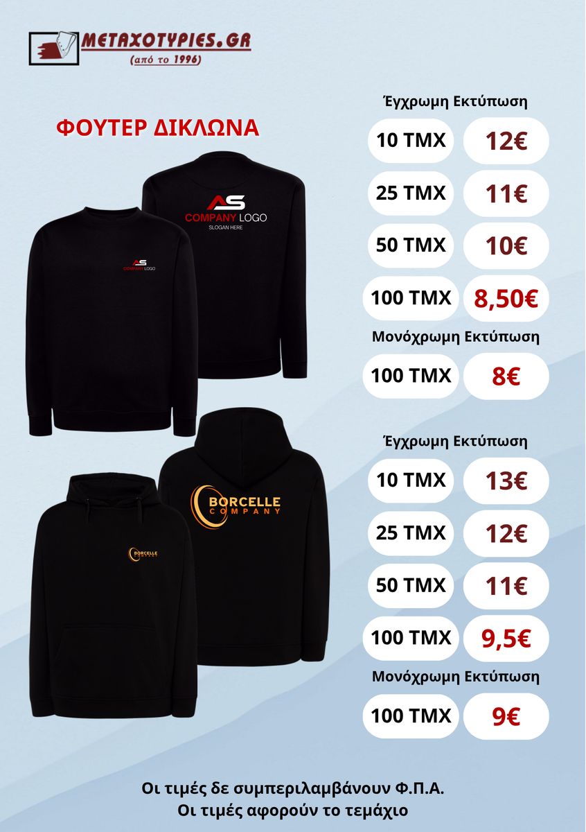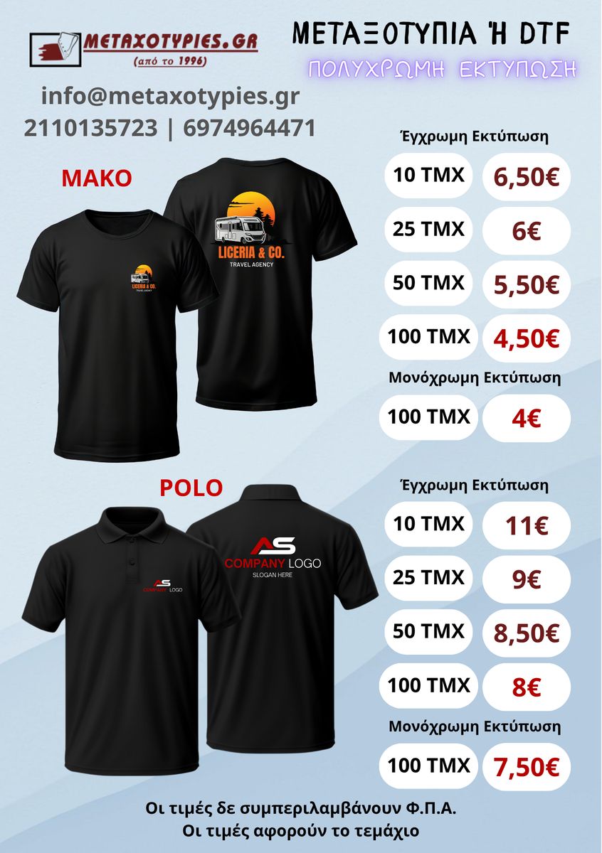Ειδικευόμαστε στην εκτύπωση χρησιμοποιώντας ψηφιακή εκτύπωση, sublimation, pigment, offset, laser, DTF και μεταξοτυπία.