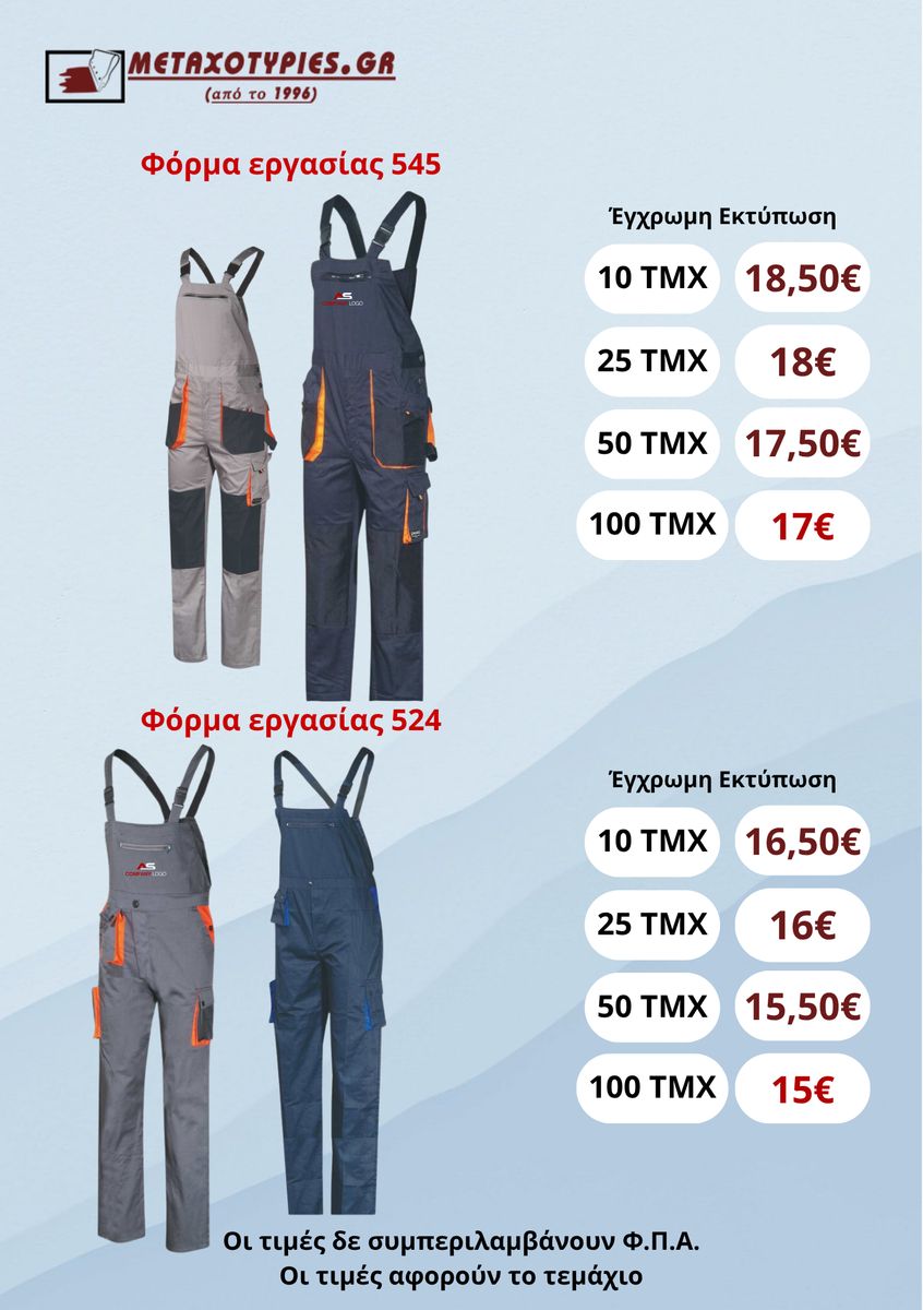 Φόρμες Εργασίας Στολές Μαγείρων Ποδιές κ.α.