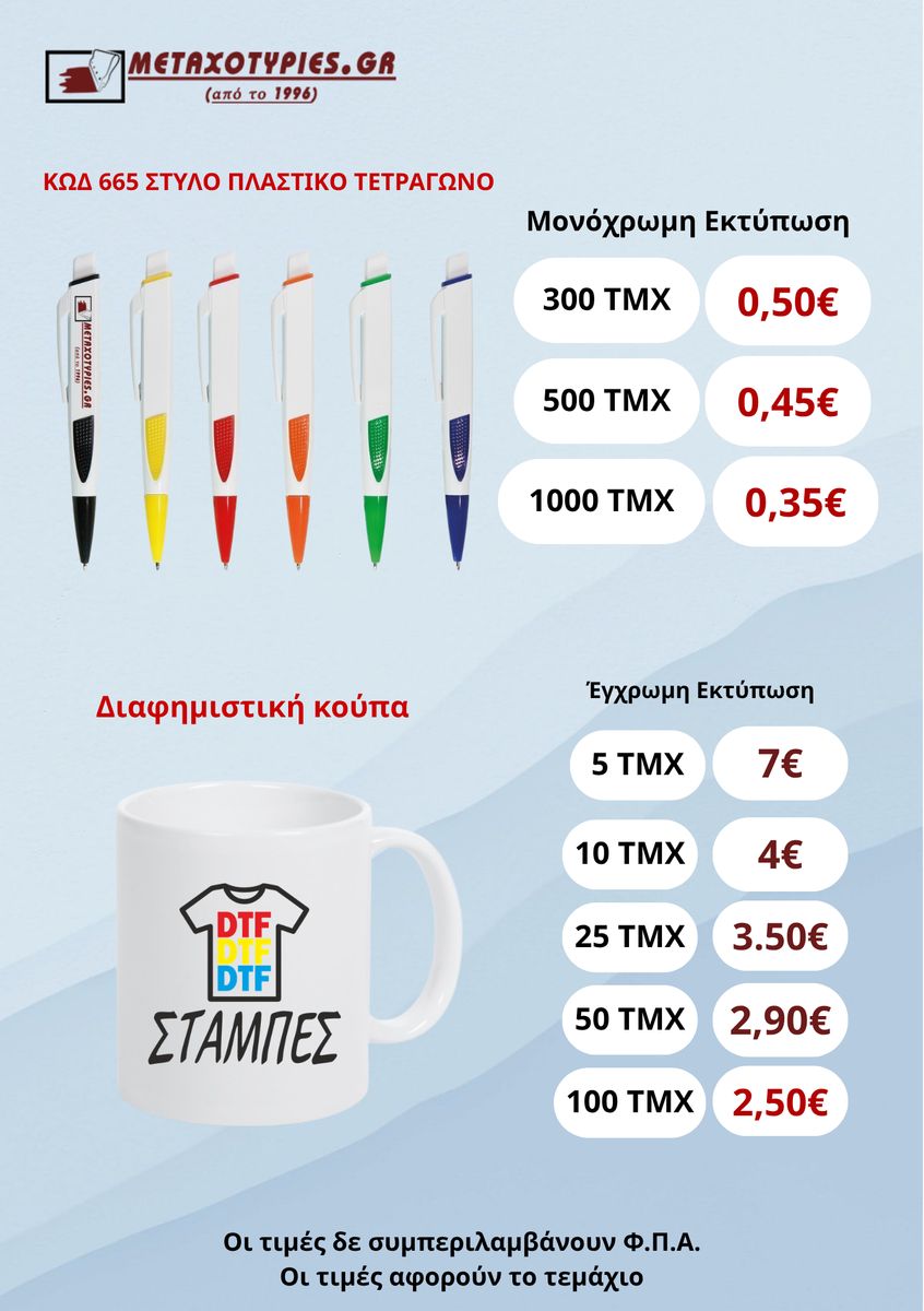Δραστηριοποιούμαστε στο χώρο των εκτυπώσεων με έδρα το Κερατσίνι Αττικής.