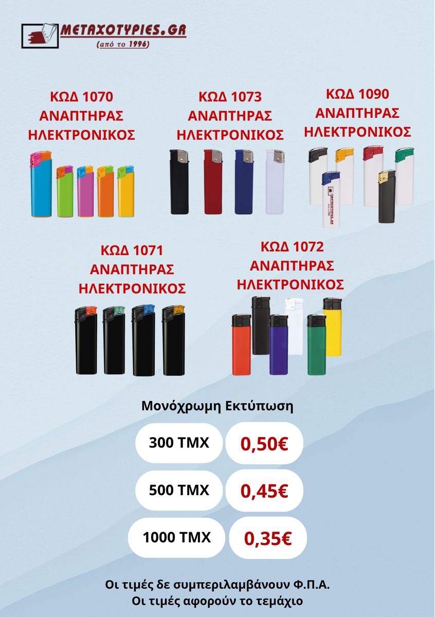 Αναπτήρες σε πολλά σχέδια και χρώματα.