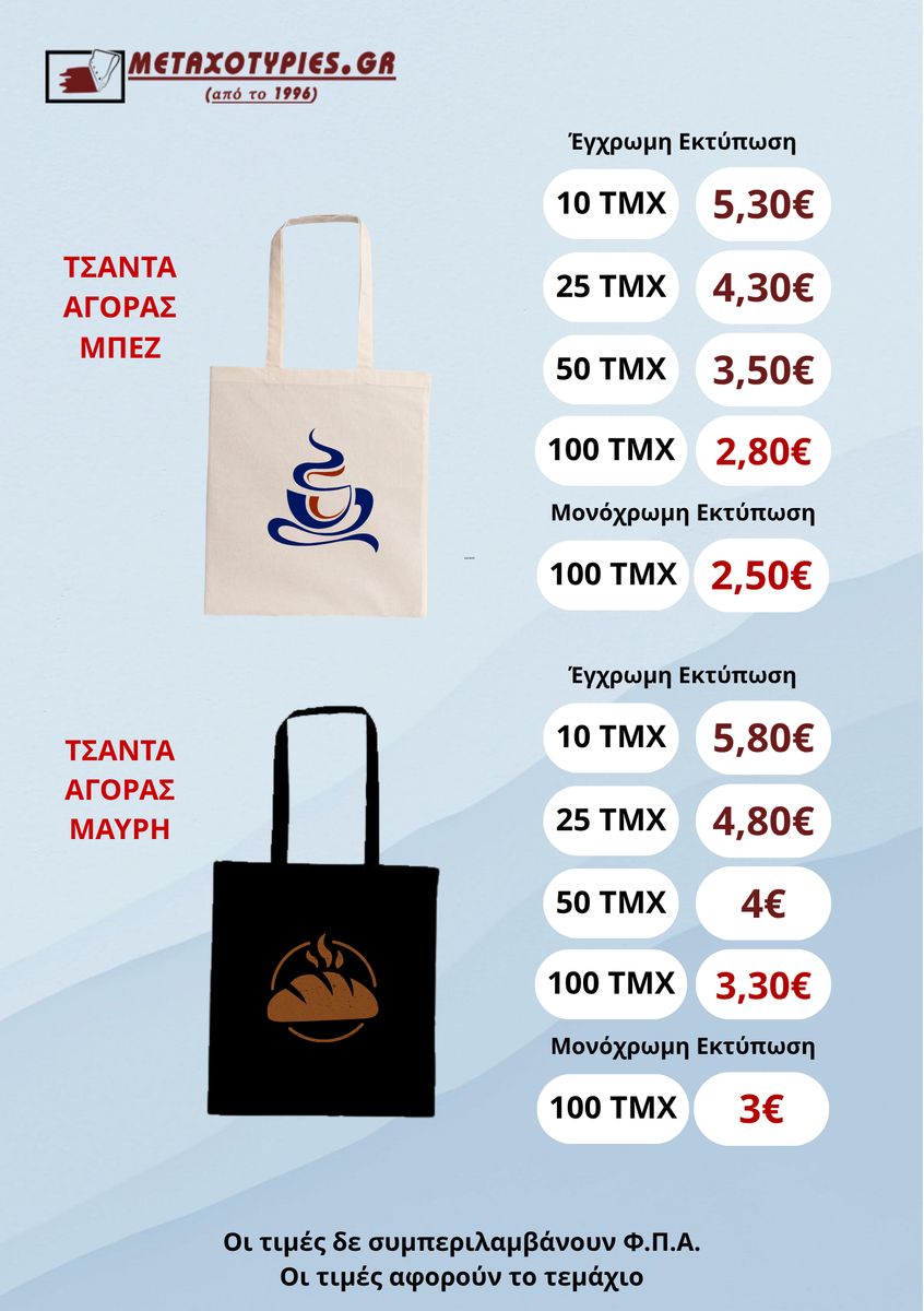 Πάνινες Τσάντες σε πολλά σχέδια και χρώματα.